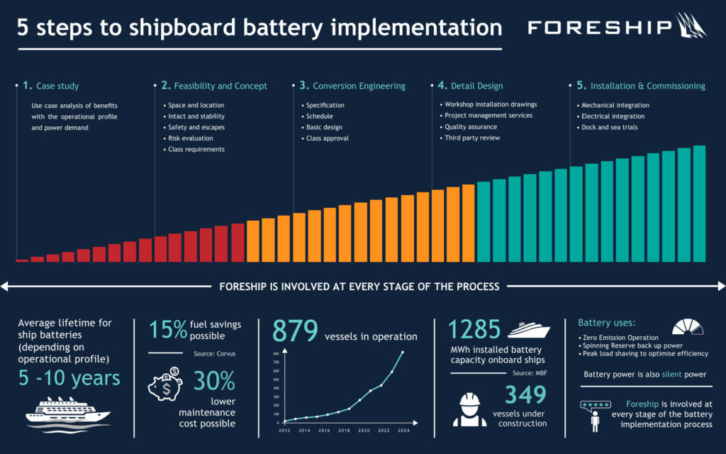 He also highlights that Foreship is increasingly using a data-driven design approach based on owner operating profiles to size batteries more precisely and make better decisions on their role and capabilities, and on their location.