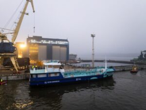 Klaipėda Port has launched what it says is the first green hydrogen- and electricity-powered ship in Lithuania. Commissioned by the Klaipėda State Seaport Authority for €12m (US$12.5m), the vessel is being built by West Baltic Shipyard and Baltic Workboats to accept waste from other ships entering the port.