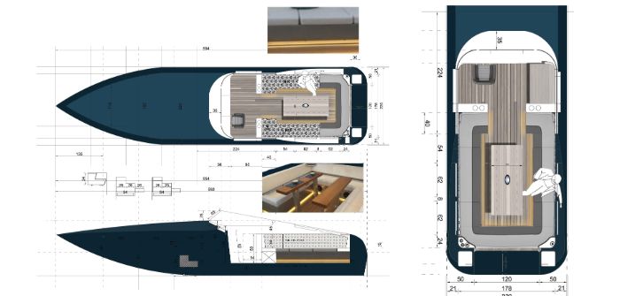 The Black Swan is based on an existing craft built by Italian firm Tullio Abbate. Originally powered by a traditional internal combustion engine, it now features four ‘second life’ batteries housed in specially designed, water-tight stainless steel containers located beneath the boat’s bench seats. The batteries and motors together weigh 278kg, which is less than the combined total of the original fuel tank and engines.