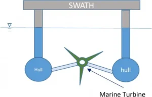 The conceptual design features a small-waterplane-area twin-hull (SWATH) vessel that acts as a docking and charging station for AUVs and unmanned aerial vehicles (UAVs). The SWATH ship is engineered for exceptional stability, enabling it to navigate through melting ice and operate in a wide range of sea conditions. It is designed to be self-sufficient, using automated sailing, solar panels and an underwater turbine positioned between its twin hulls to generate and store energy, ensuring continuous mission support even when sailing against ocean currents.