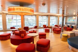 Saint-Malo will also feature a more spacious garage, wider interior spaces and more comfortable beds than the ship it replaces. Its 10 decks house 387 cabins, 28 of which will be pet-friendly, with a capacity for 1,290 passengers.