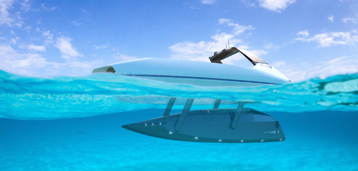 Platypus Craft says that the semi-submersible mode can be achieved in just a few seconds. In the underwater configuration, the trimaran’s central hull is placed 2m below sea level, providing its pilot and seven passengers with a unique view. This multi-hull solution, unique for a unit of this size, will ensure smooth navigation with almost a complete lack of roll, it is claimed.