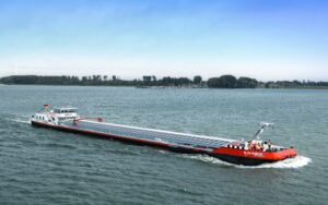 The vessel, which will be used to transport steel and bulk materials for steel production company Salzgitter, combines a diesel-electric, future-fuel-ready drive concept with the ability to operate in shallow waters and has SeaFar technology enabling remote-controlled navigation. A solar module system generates up to 37,500kWh of electricity per annum, which can be used to power the vessel.