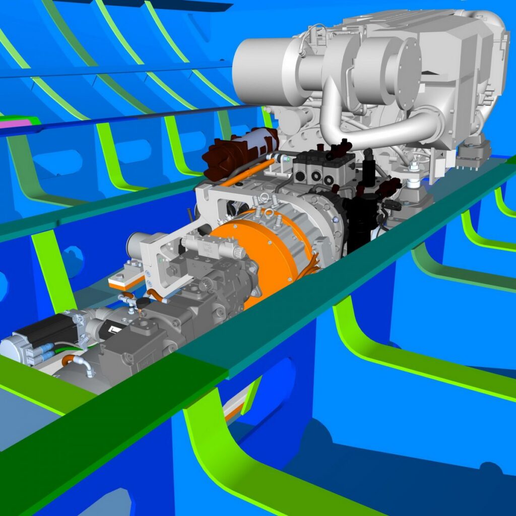 The centerpiece of Juliet’s hybrid conversion is a new gearbox coupled with an electric motor/generator. This facilitates direct electric propulsion, with energy drawn from either the main engine, the newly fitted battery bank or the onboard generator. Conventional shaft drive directly from the engine remains an option as well. With the main engine becoming the primary source of power generation, the system is configured to deliver peak shaving from the battery bank – during sail hoisting and maneuvering operations, for example. Furthermore, the yacht’s maneuvering thrusters are now electric rather than hydraulic powered.