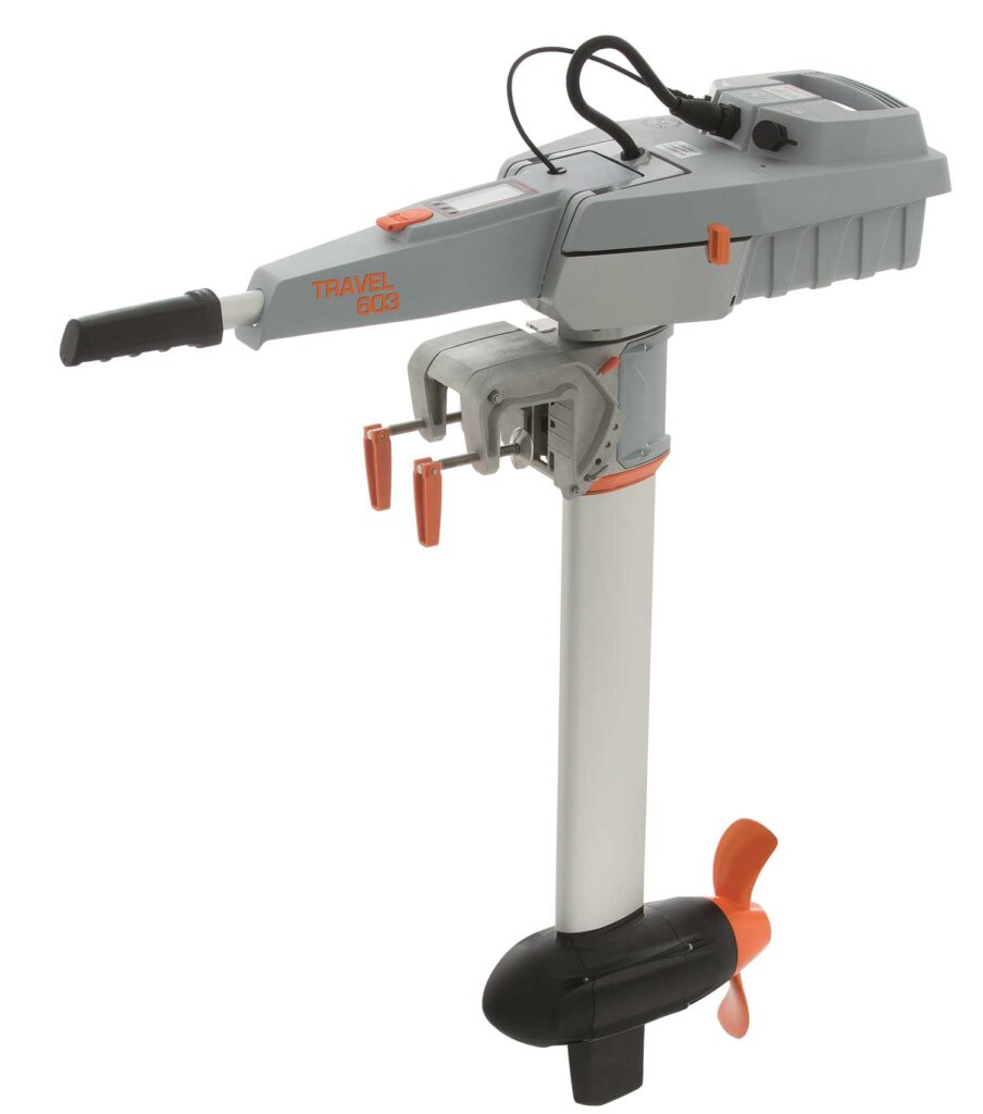 Finally, following the success of its direct-drive Travel 1103 system, the company has announced a new addition to the Travel family, the 603, a two horsepower-equivalent electric outboard suitable for dinghies and day sailers up to one ton. The system is supplied with a lightweight, 500Wh lithium-ion battery that clicks on top of the motor, has an optional USB port for charging a mobile phone or camera, and is easy to remove for charging. The removable battery even floats if accidentally dropped in the water. The heaviest piece of the Travel 603 weighs 11kg and the total system weight, including the removable battery and tiller, is only 15.5kg.