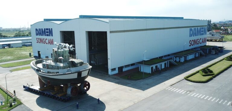 Damen Shipyards Group says it has reached a major milestone in the construction of its first fully electric Reversed Stern Drive tug. The shipbuilder is constructing the RSD-E Tug 2513, named Sparky, for New Zealand’s Ports of Auckland. Recently, Damen Song Cam Shipyard in Vietnam installed the tug’s batteries.