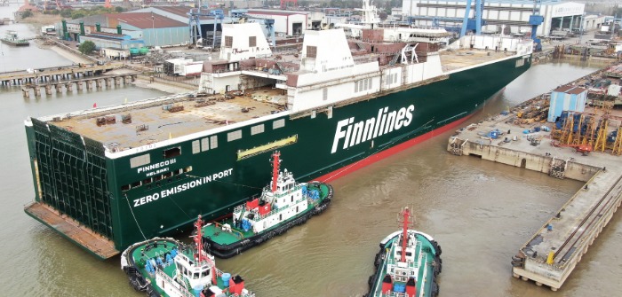 Finneco III, the third hybrid ro-ro vessel set for the Finnlines fleet, has been launched from the China Merchants Jinling Shipyard (Jiangsu) in China.