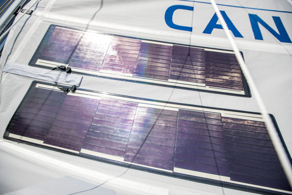 French company Solar Cloth System developed the technology, which is officially called Powersails. “Due to the high modulus construction of the composite material,” Parker continued, “the impact of the PV panels will be minimal in terms of the sail’s characteristics and performance. The technology is cutting edge and to my knowledge it is first project of its kind in the UK.”