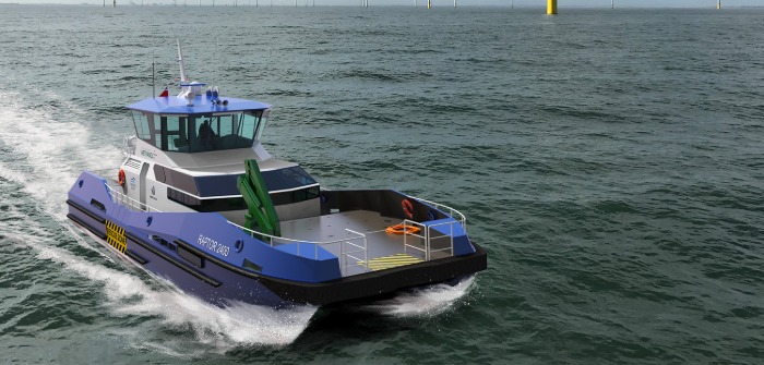 The 23.8m-long RAptor 2400 features cabins for the master and two crew in the demi-hull accommodations, while a technician seating area on the main deck can accommodate up to 12 windfarm service personnel.
