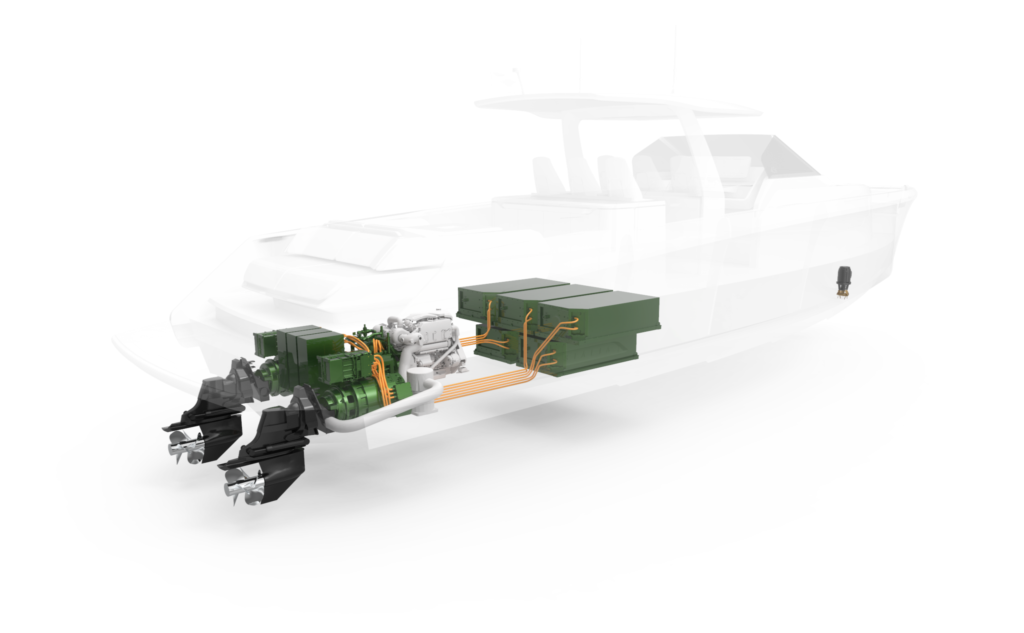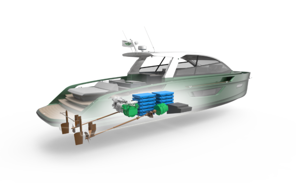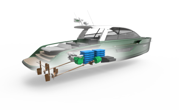 57ft luxury yacht with shaft hybrid propulsion system