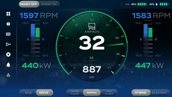 Ampros is a Polish company that designs high power electric and hybrid propulsions systems for marine industry. Electric motors power ranges from 110-6000kW and the HV battery is able to be fast charged with up to 350kW. The company offers pure electric solutions as well as hybrid systems that include diesel or H2 range extender also in combination with PV systems.